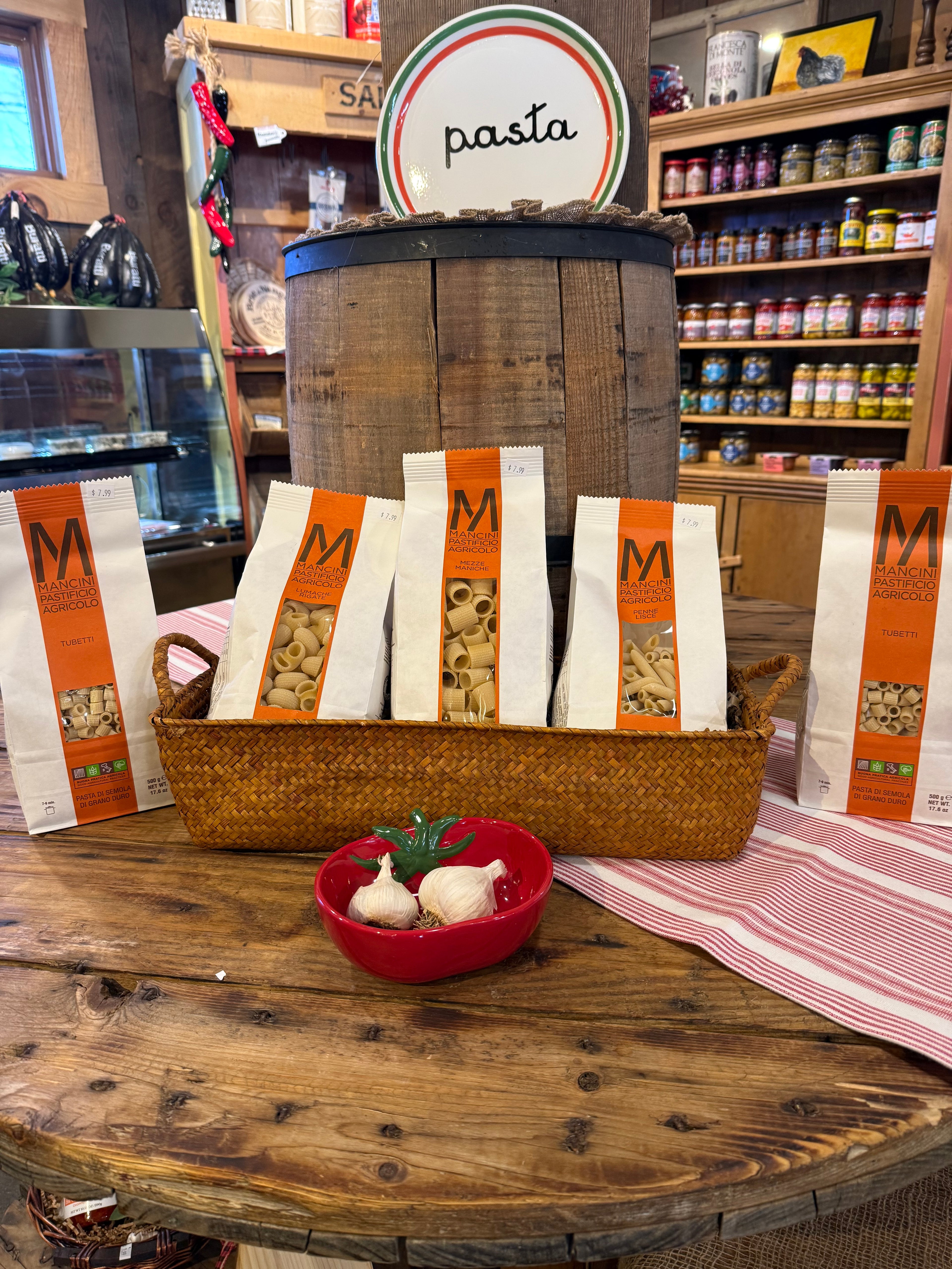 One of my favorite things about owning The Barn Door is discovering products that truly reflect the passion and craftsmanship behind them. When I came across pasta from Mancini Pastificio Agricolo, I immediately knew it was something special.What makes it stand out to me is that they actually grow the wheat for their pasta right on their farm in Italy. It’s that kind of dedication to quality and tradition that we look for when bringing new products into the store.Lately, I’ve been enjoying a very simple dish using the Mezze Maniche. I cook the pasta until al dente, crisp a little pancetta in a pan, and then toss everything together with freshly grated Parmigiano Reggiano and a splash of the salted pasta water. The pasta water and cheese create a silky sauce that coats every piece of pasta.That’s it. Just a few ingredients.No cream, no complicated steps. Just good pasta, great cheese, and a dish that feels comforting and delicious every time.I hope you enjoy these new pasta shapes as much as I do.